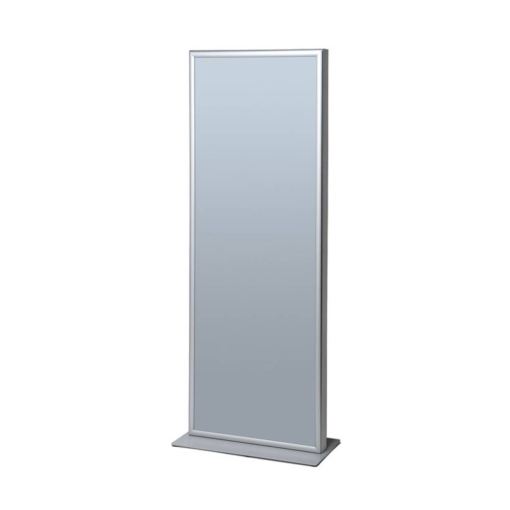 Moderner, doppelseitiger Posterrahmen-Stele XL silber eloxiertes Aluminium in Kombination mit zwei Klapprahmen 25mm Profil 2xDIN A1 Format. Diese spezielle Lösung im Hochformat bietet eine besonder große Werbefläche. Einfacher und schneller Motivwechsel durch bewährte Klapprahmentechnik. Stabiler Halt. Außenmaße: 700 x 1840 x 400 mm.