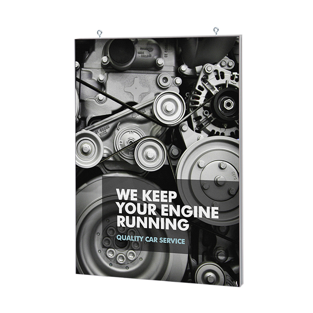 Entscheiden Sie sich für unsere Version mit oder ohne LED. Die 50 mm-Version ist ohne LED erhältlich. Entscheiden Sie sich für ein unschlagbares Preis-Leistungs-Verhältnis mit dem Spannstoff-Rahmen 50 mm, einer idealen Lösung für unbeleuchtete Stoffdruckwerbung. Aufhängehaken und ein 2 m langes Stahlseil zum Abhängen von der Decke sind bei der abgehängten Version im Lieferumfang enthalten. Beleuchten Sie Ihre Werbung mit dem 90 mm tiefen, LED-beleuchteten Spannstoff-Rahmen und leuchten Sie hell in den Himmel. Die 90 mm-Version ist mit LED erhältlich.